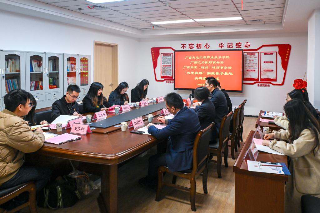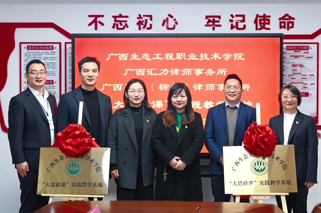 12月26日上午,我校与广西汇力律师事务所、广西同望(柳州)律师事务所“大思政课”实践教学基地共建签约暨揭牌仪式在柳州市公证处举行。学校党委副书记杨燕红、广西汇力律师事务所副主任覃福毅、广西同望(柳州)律师事务所党支部书记唐德仁出席此次活动,柳州市公证处党支部书记、副主任(主持工作)张敏主持会议。马克思主义学院党政领导班子及教师代表参加会议。