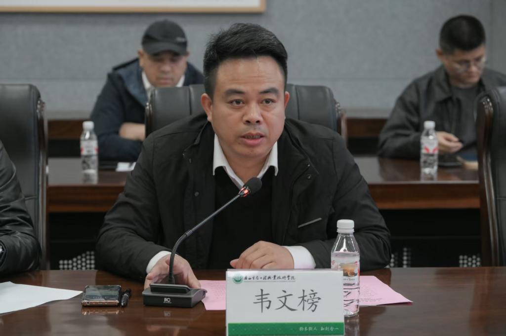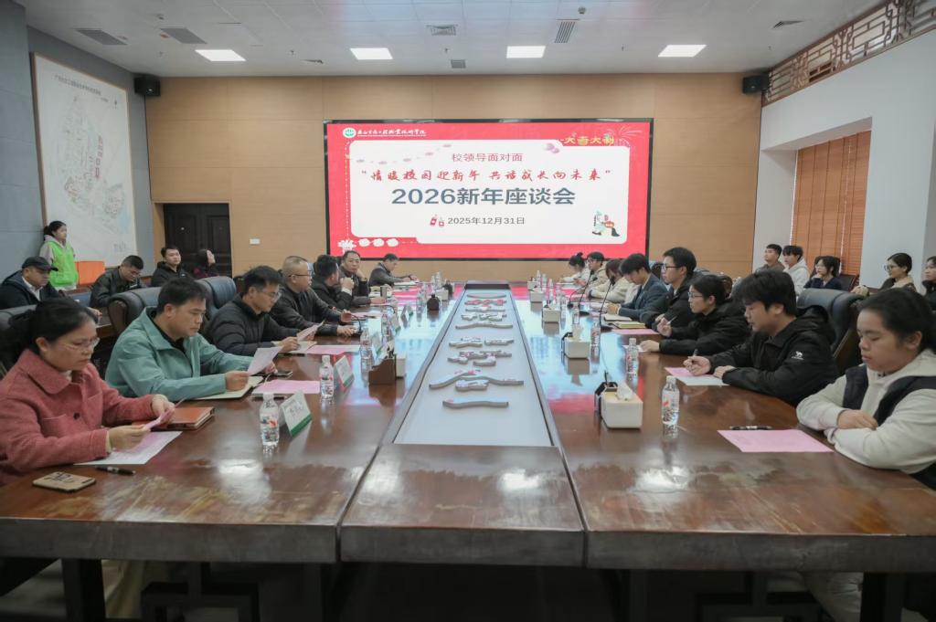 为加强师生沟通交流,深入了解学生学习生活需求,凝聚推动学校高质量发展的共识,2025年12月31日,我校在一棵树会议室召开2026年学生代表新年座谈会。学校党委委员、校长助理、党委统战部部长韦文榜参加会议并讲话,相关职能部门负责人及各二级学院学生代表参加座谈。